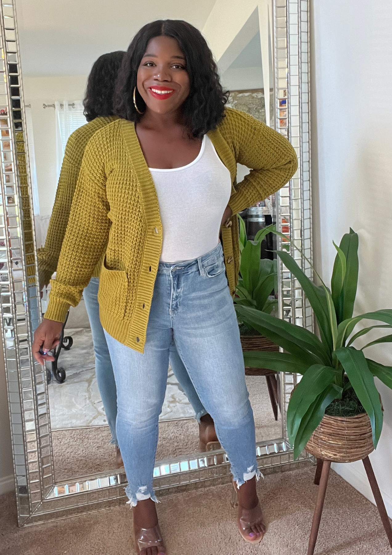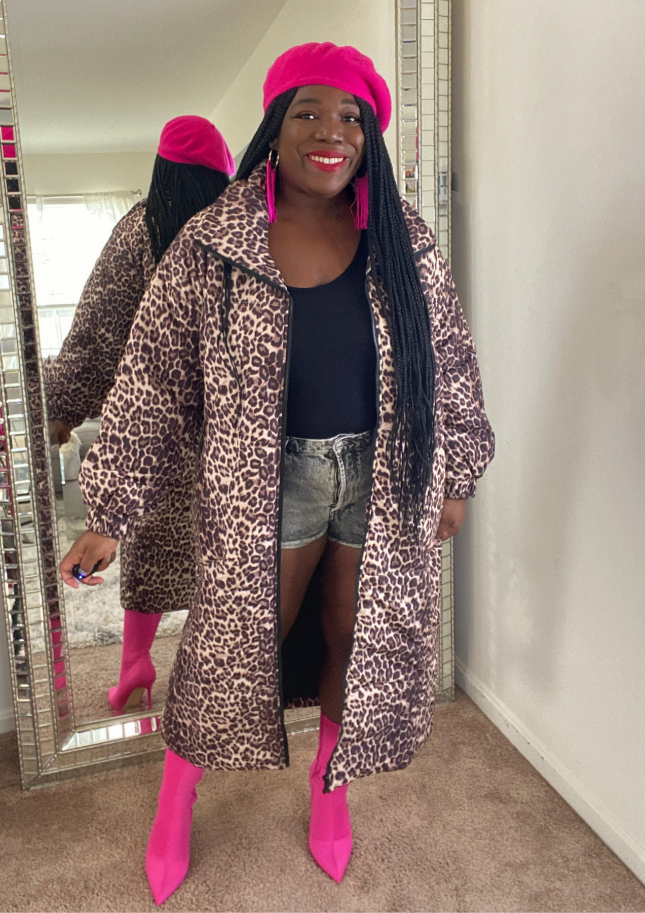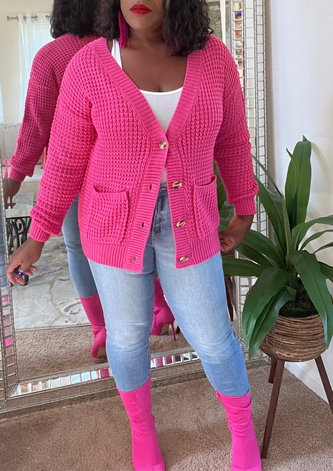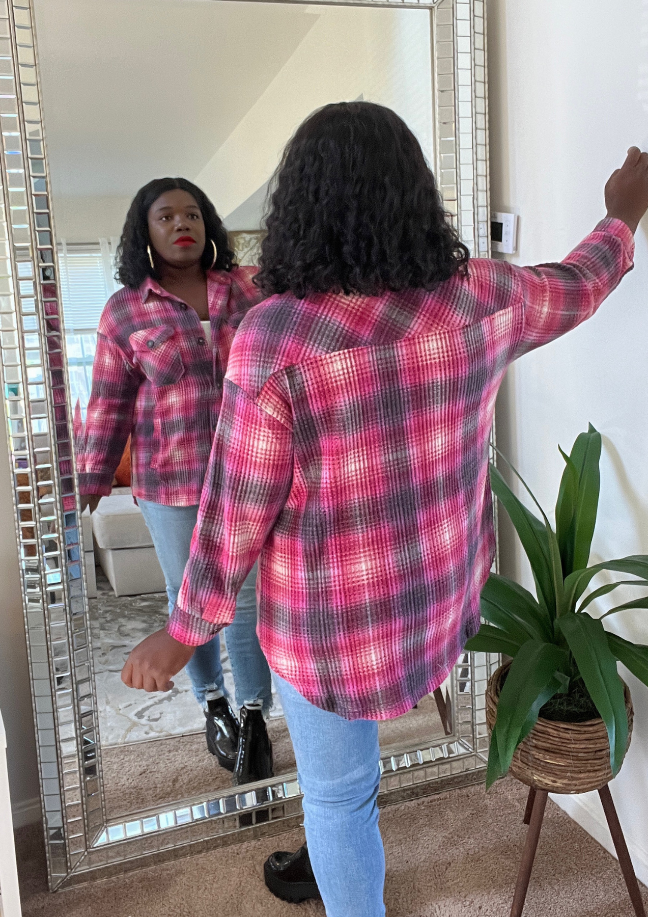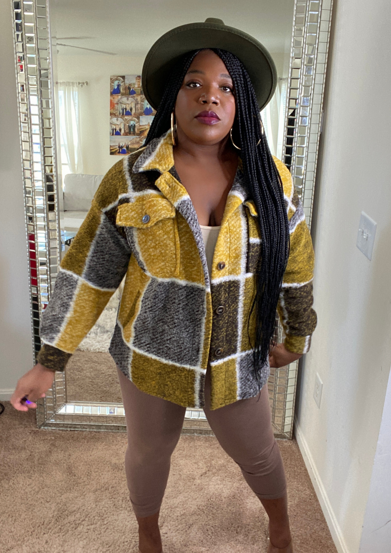 This jacket is just beautiful. Definitely add one to your closet ( Available in 3 colors). A statement piece. Just put it on pair with your fave shoes and you're ready to go. The jacket is light weight. You can layer this with a long sleeve top. Not itchy on skin. Very soft, comfortable, can be worn as outfit and kept on the entire time.